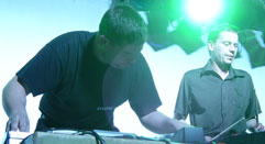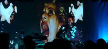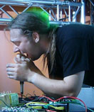 VJ Echelon, der verschiedene Videos live auf der Bühne generierte. Zwei Musikstücke, deren Titelbenennungen mir leider nicht bekannt sind, stachen durch ihre Klänge besonders hervor. Für eins dieser beiden Stücke, es war auch zugleich das letzte Stück, kam ein