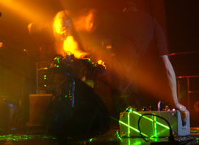 Antracot) stand plötzlich mit seinem elektronischen Equipment auf der Bühne und mischte kräftig mit. Währenddessen versuchte der Gitarrist ständig durch Rempelbewegungen den hochhausgroßen Verstärker auf die Seite zu legen. Damit nicht genug, räumte er die Hälfte des von Jörg aufgebauten Equipments mit seinem ausgestreckten Arm ab, um auf dem Tisch zu springen. Die Panik in Jörgs Augen, gepaart mit dezenten Abwehrbewegungen, konnte ihn von seinem Vorhaben jedoch nicht abbringen. Destruktion als Kunstform bezeichnet man so etwas wahrscheinlich in Fachkreisen. Dass es aber Leute gibt, die sich für so etwas noch begeistern, macht sicherlich jedem Therapeuten Angst. Leider wird es wohl nicht mehr so schnell die Möglichkeit geben, einen weiteren Auftritt von