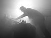 Etwas ruhiger aber nicht harmonischer ging es mit dem Einmann-Projekt Flutwacht weiter. Ein Soundtüftler, der viele Bestandteile eines Schrottplatzes in seine Performance und Klänge einfließen lässt bzw. ließ. Und so wunderte es wohl niemanden mehr, dass man seine ohnehin schon durch hohe Temperaturen und vorhandene Schwüle klebrige Haut durch eingesetzte Trennwerkzeuge noch ein wenig paniert bekam. Ein audiovisueller und analoger Hochgenuss!